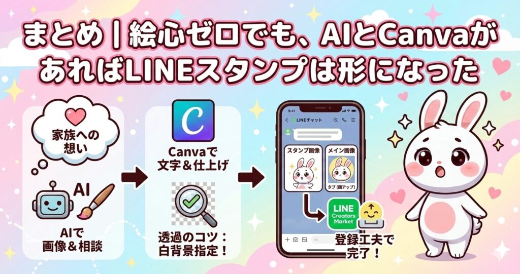 まとめ|絵心ゼロでも、AIとCanvaがあればLINEスタンプは形になった