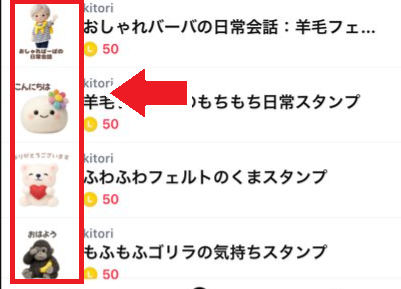 トークでスタンプを選ぶときに表示される「目印(アイコン)」なんですよね。