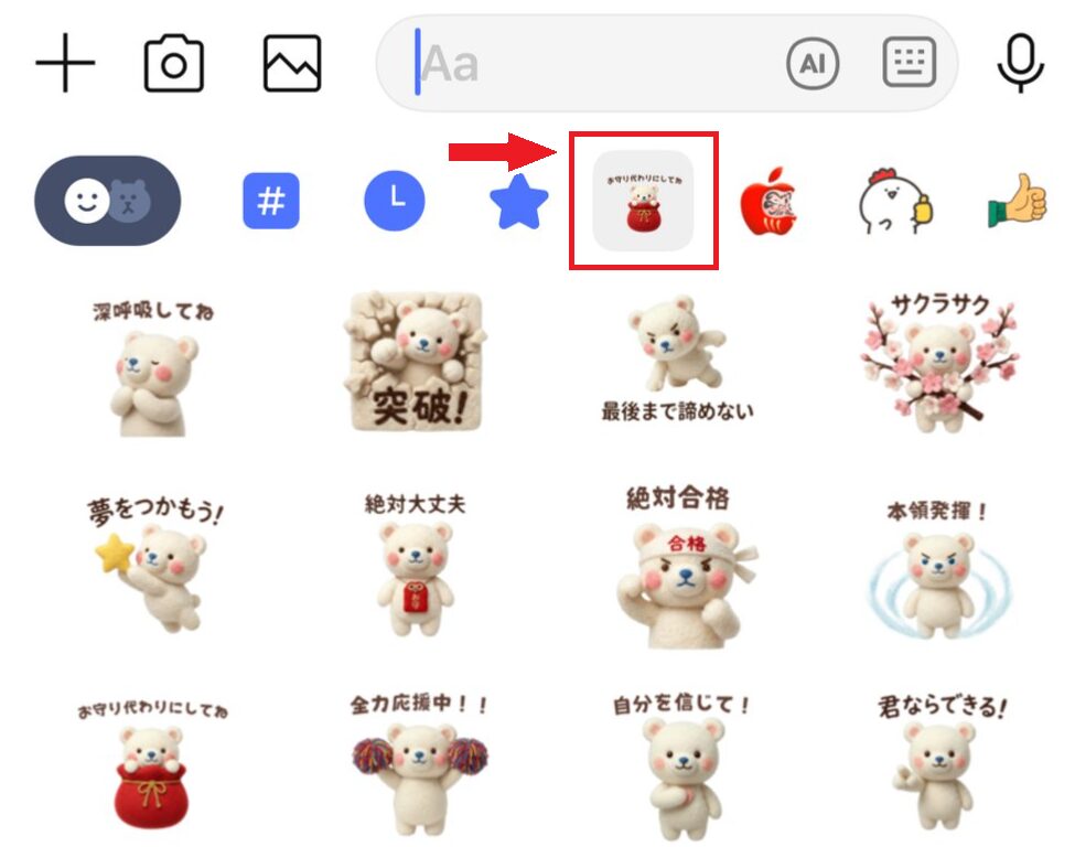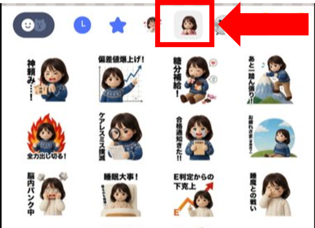 - 表示される場所:トークルームのスタンプ選択画面(タブ・アイコン部分)