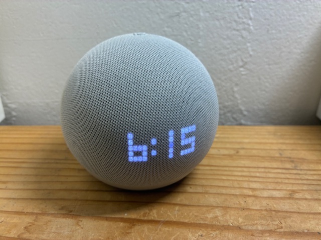 ▲ Echo Dot(第5世代)with Clock。前面のLEDに時刻が表示されるので、時計代わりにも便利です