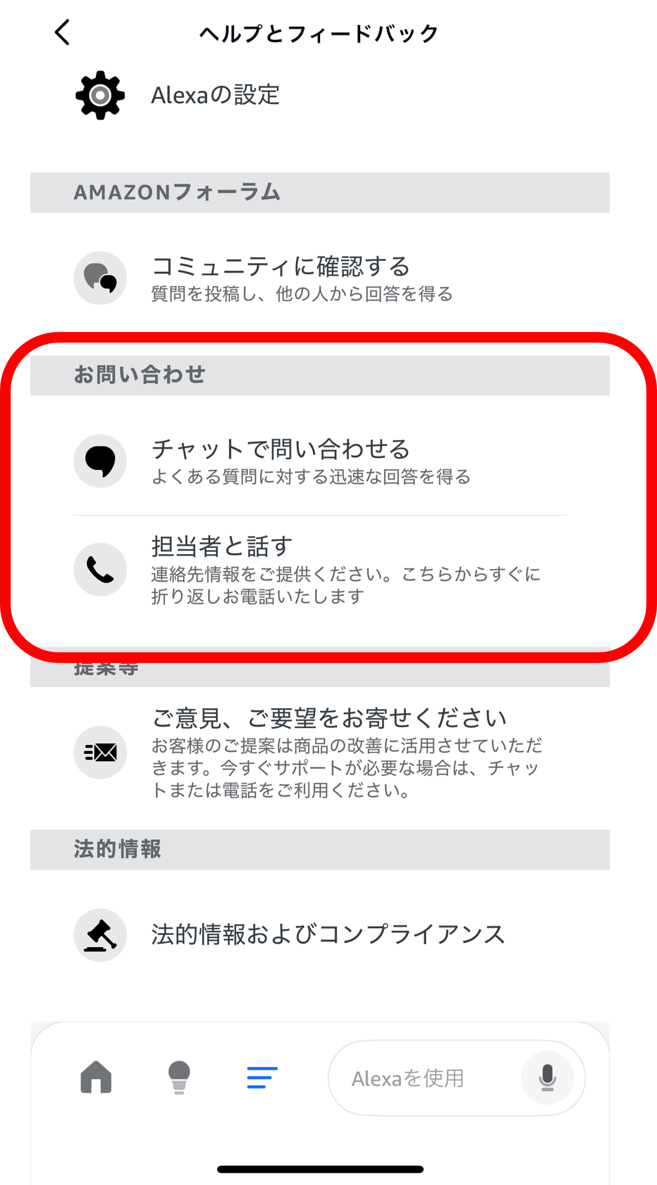 - それでも直らないときは、アレクサアプリからサポートに問い合わせ