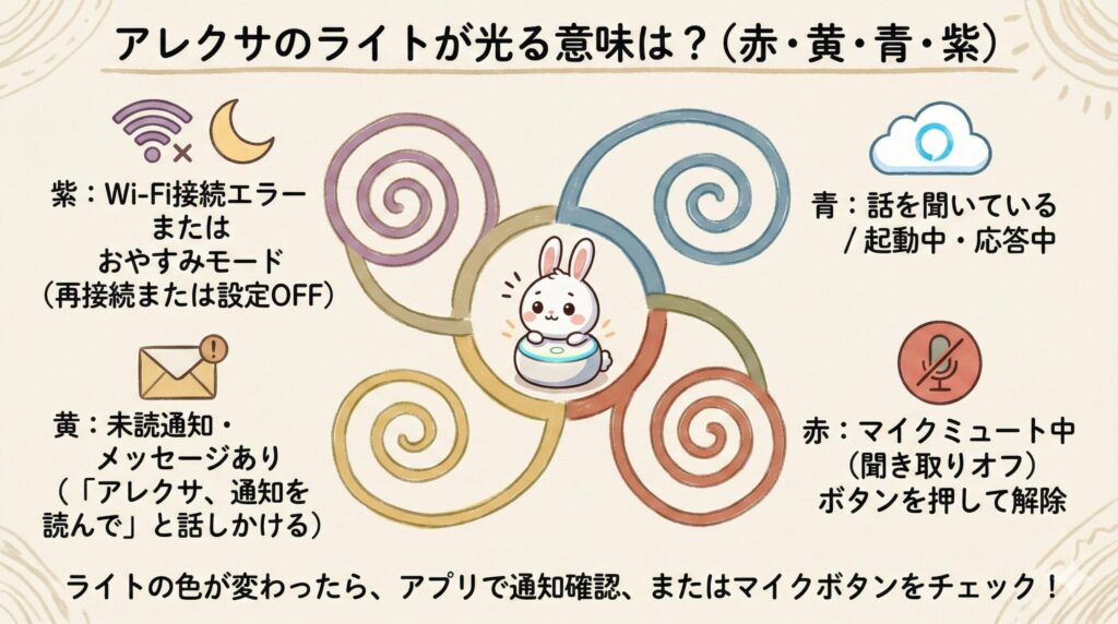 「アレクサのライトが赤・黄・青・紫に光る」意味は?