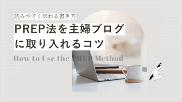ブログ運営 PREP法を主婦ブログに取り入れるコツ|読みやすく伝わる書き方 PREP法を主婦ブログにどう使えばいい?固くならずに読みやすく伝わる書き方を、実例とテンプレ付きでわかりやすく解説します。 2025.10.18 ブログ運営