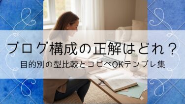 ブログ運営 ブログ構成の正解はどれ?目的別の型比較とコピペOKテンプレ集 ブログ記事の構成で迷う方へ。PREP・HowTo・レビューなど5つの型を比較し、目的別に選べるテンプレ集を紹介。自分に合う構成が見つかります。 2025.10.18 ブログ運営