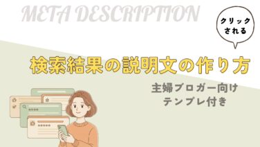 ブログ運営 クリックされる検索の説明文の作り方 主婦ブロガー向けテンプレ付き 主婦目線で分かる「検索結果の説明文」の整え方。90〜120文字の型と例文で今日からクリックを増やす。Cocoon手順も解説。 2025.10.17 ブログ運営