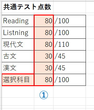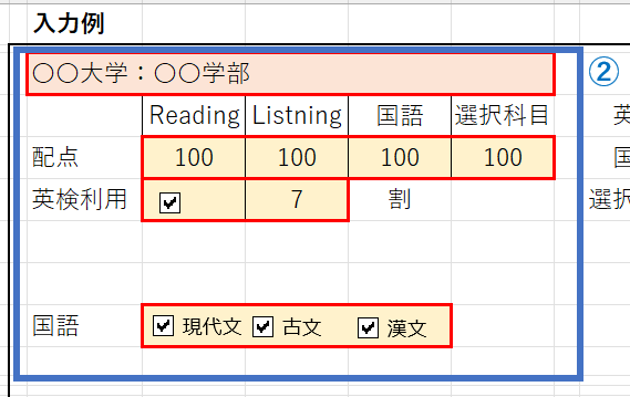 この表は「共通テストの点数を大学ごとに当てはめて整理する」ためのもの