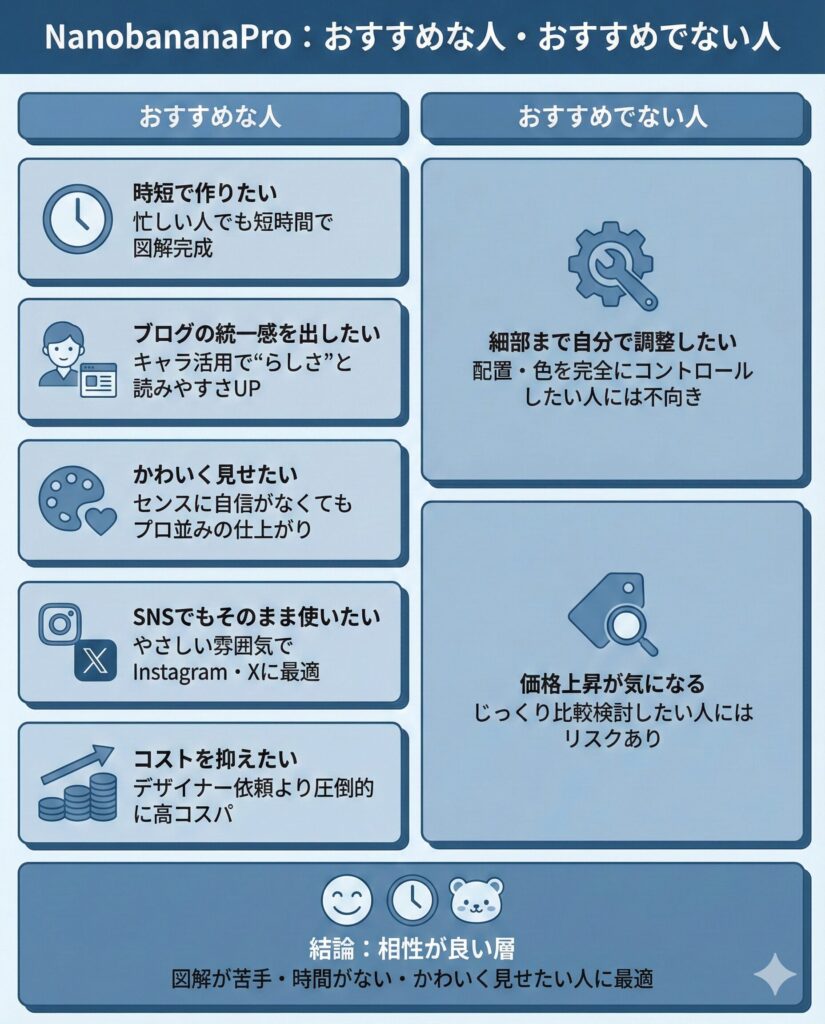 とくに「図解が苦手」「時間がない」「ブログに統一感を出したい」という人には向いていると思います。