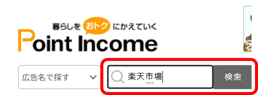 ポイントインカムから楽天市場に移動して買い物をするときは、