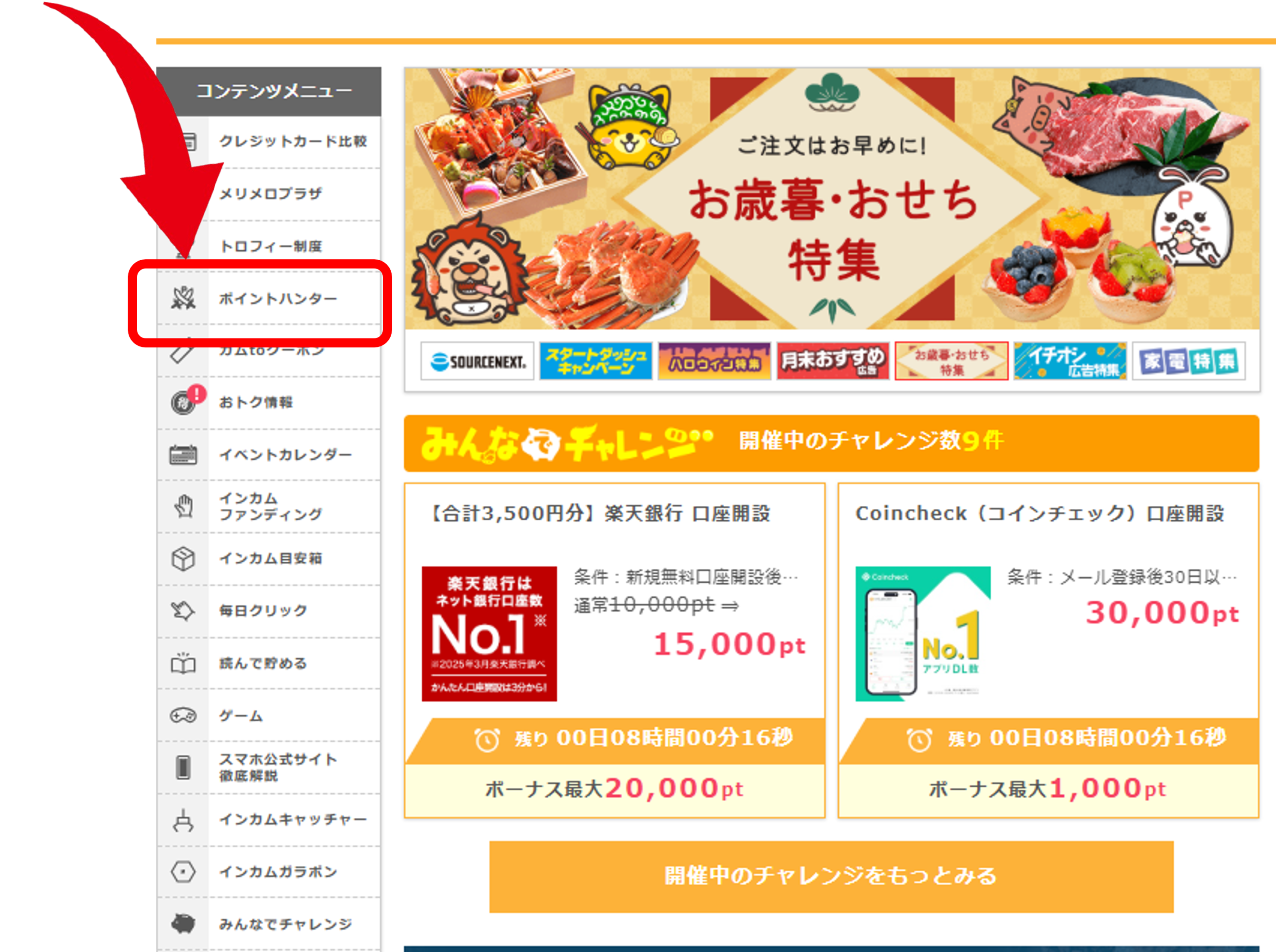 たとえば「◯日間ログイン」「買い物広告を1件利用」「友達紹介キャンペーン」など、条件をクリアするだけでボーナスポイントがもらえます。