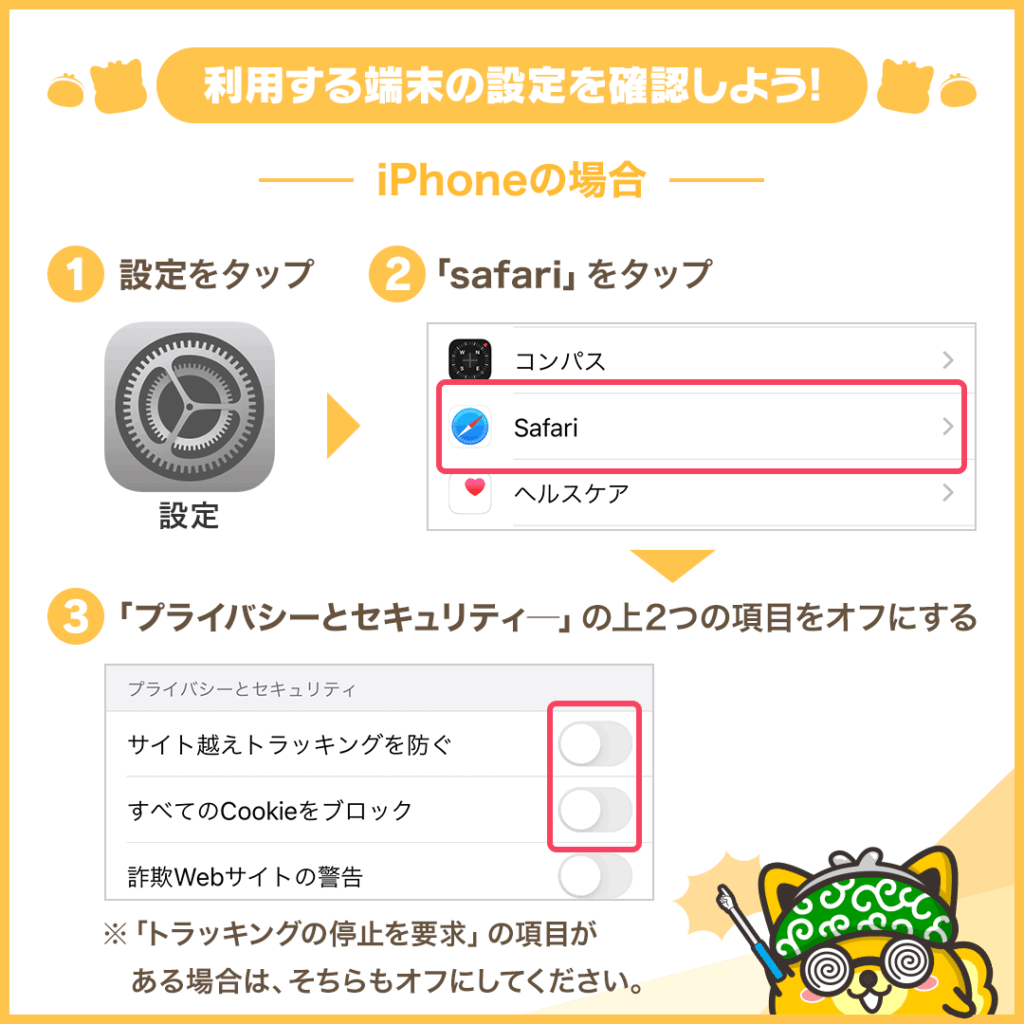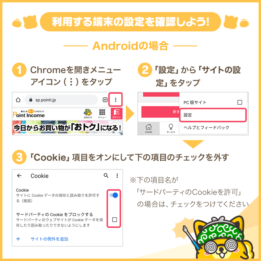 - スマホ設定(Cookieの有効化)でポイントのもらい忘れを防止
